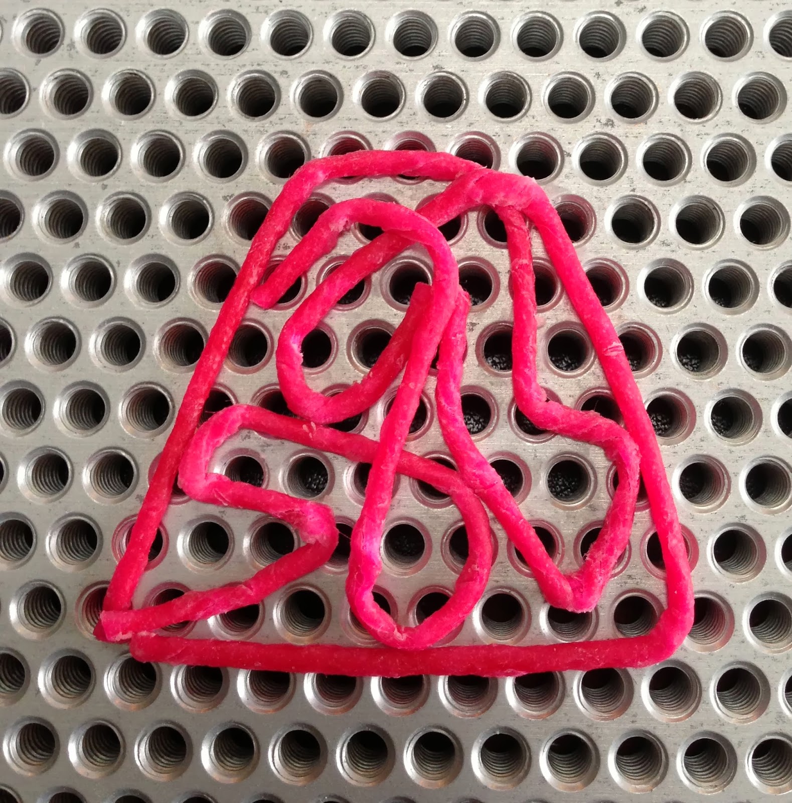 Next, place peg at all of the turns. I used the 1/8" pegs but could have used some of the larger or smaller ones as needed. When I make the final version of these components, I may use the 1/4" in the corners.